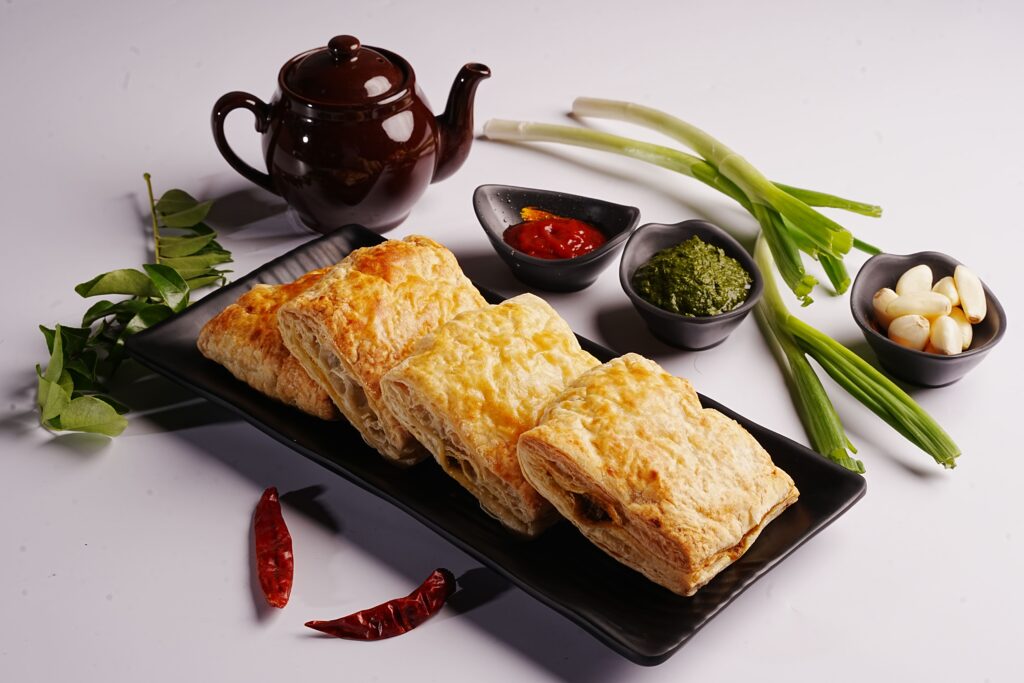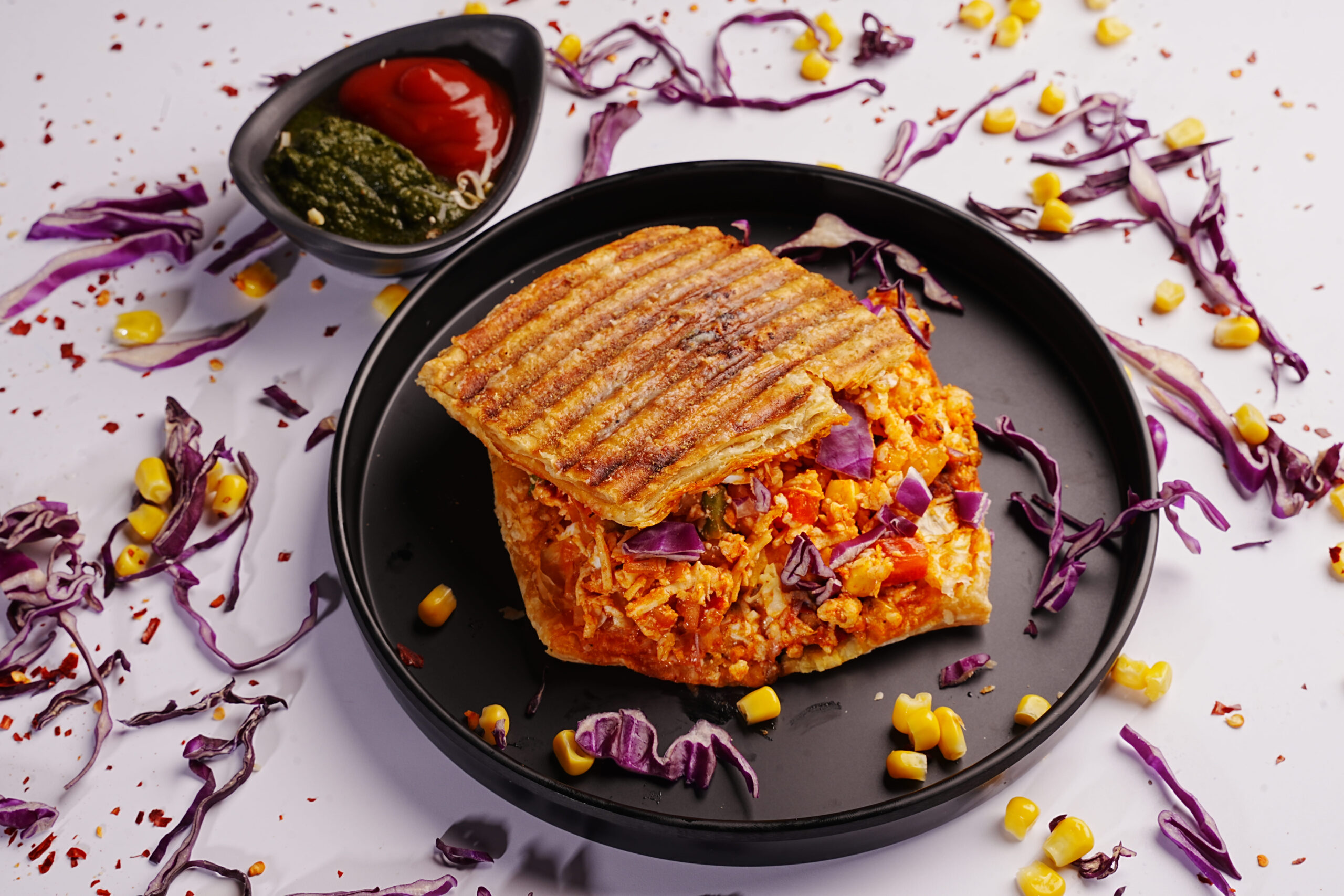 Grilled puff stuffed with veggies and Schezwan sauce.