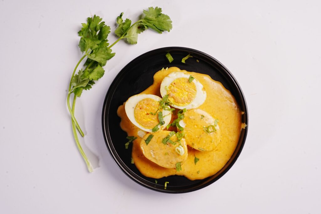 A layered indulgence of creamy yolk gravy, crispy egg whites, flavored with aromatic Indian spices.